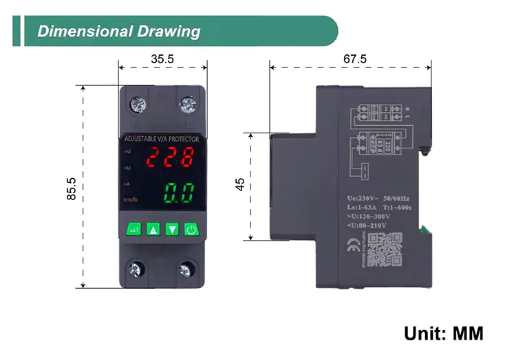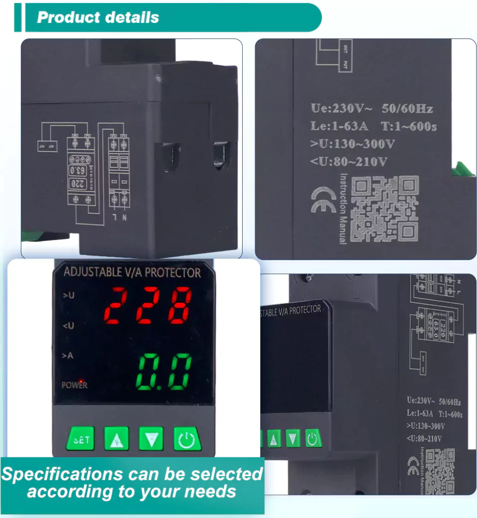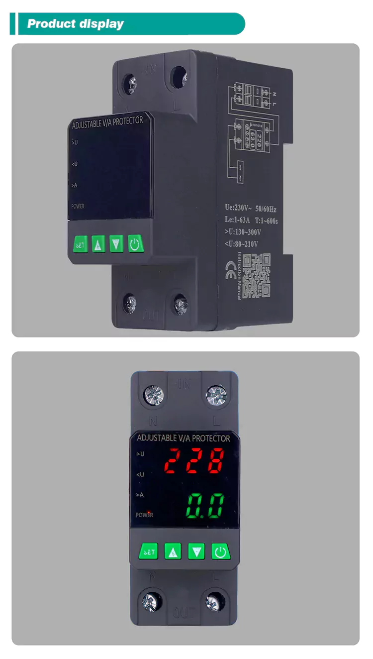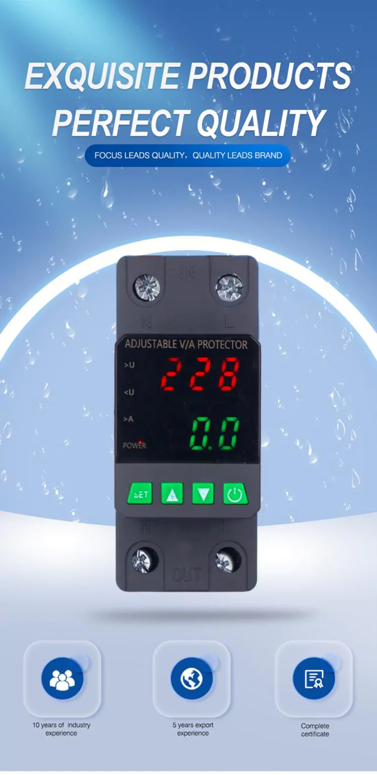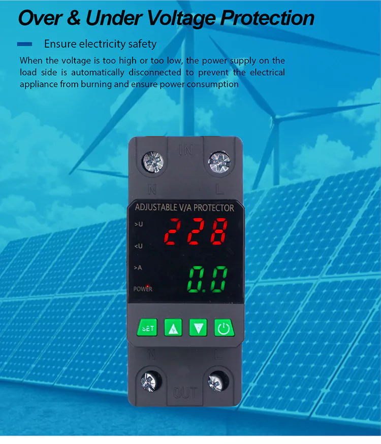 Utrustad med en digital skärm och tillverkad med importerade modulära elektroniska komponenter har den hög tillförlitlighet och prestanda. Skyddet stänger automatiskt och snabbt av strömförsörjningen under onormala spänningar (såsom överspänning, undervolage eller rutnätsfluktuationer) och återställer strömförsörjningen efter att spänningen återgår till det normala.