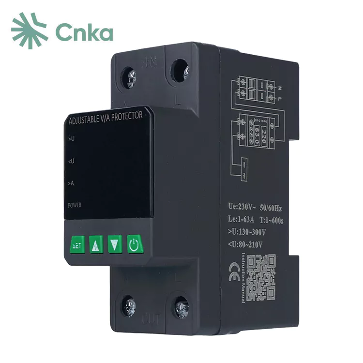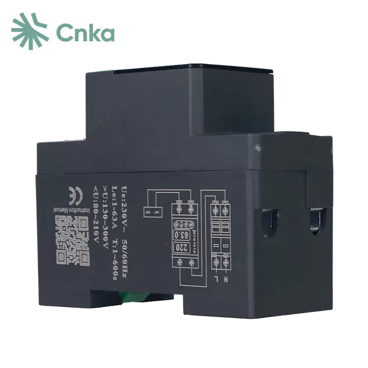 CNKA är en välkänd kinesisk leverantör som tillhandahåller grossist i sitt varumärkes 2-polspänningsskyddsrelä. Dessa enheter är utformade specifikt för enfas AC 220V, 50Hz-kretsar med en nominell ström på 63A, vilket gör dem till ett idealiskt val för att skydda bostadsfördelningslådor eller ledningar som levererar kraft till enfasutrustning.